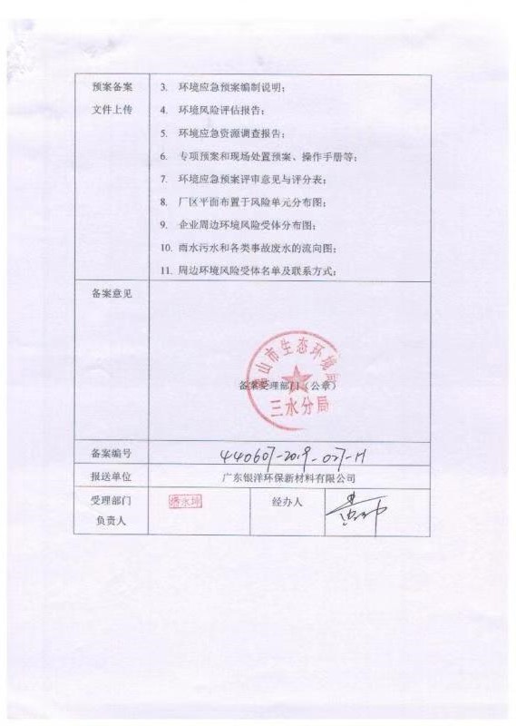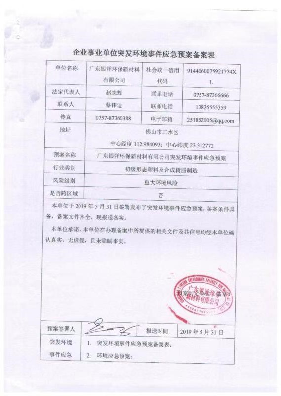 2019年企业事业单位突发环境事件应急预案备案表